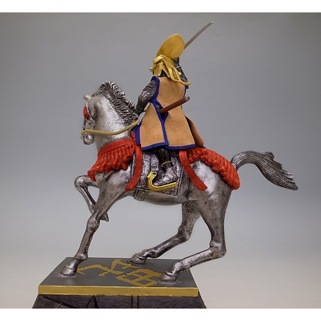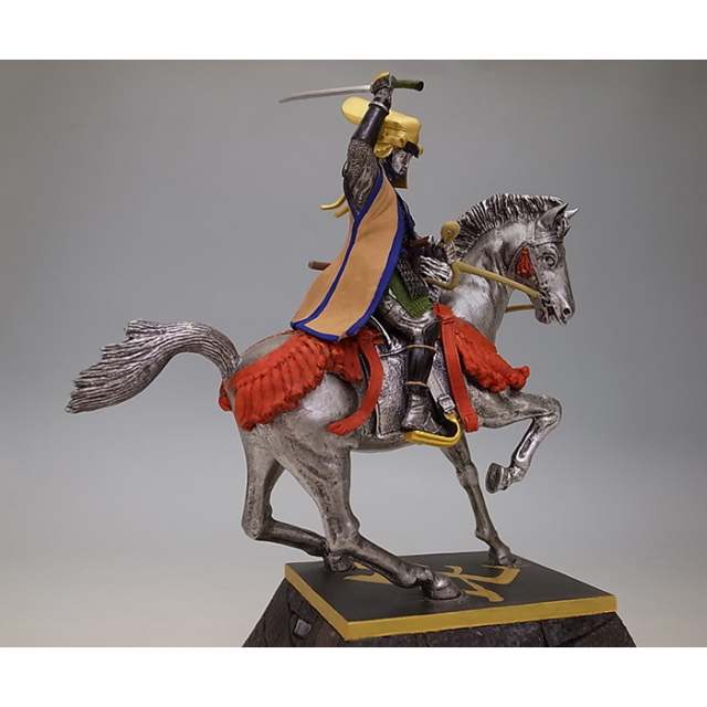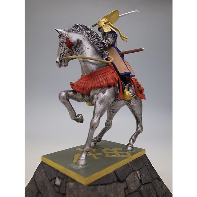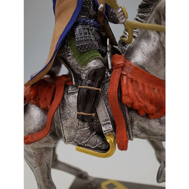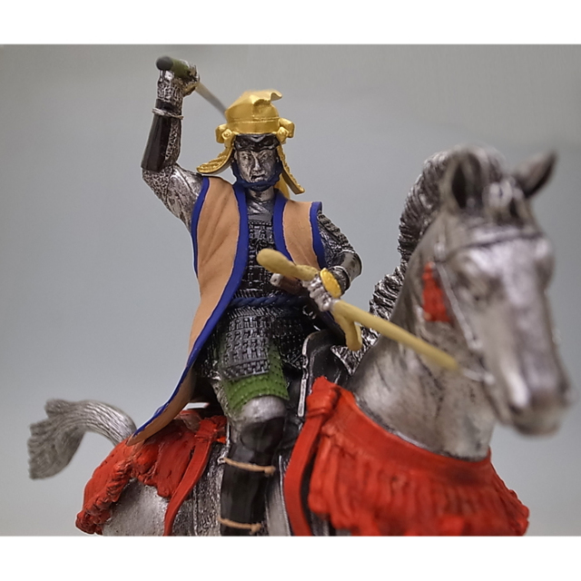 陣羽織は枯色に鮮やかな紺の縁取りが入った新彩色。兜や手綱、鎧にも新たな色が追加されています。