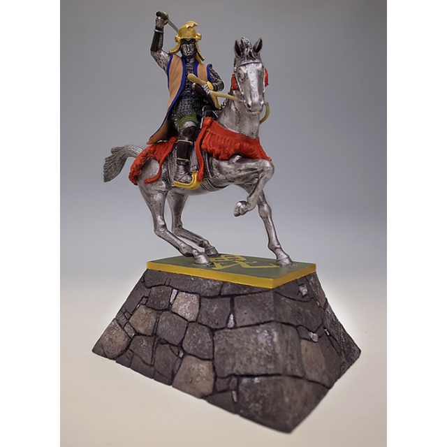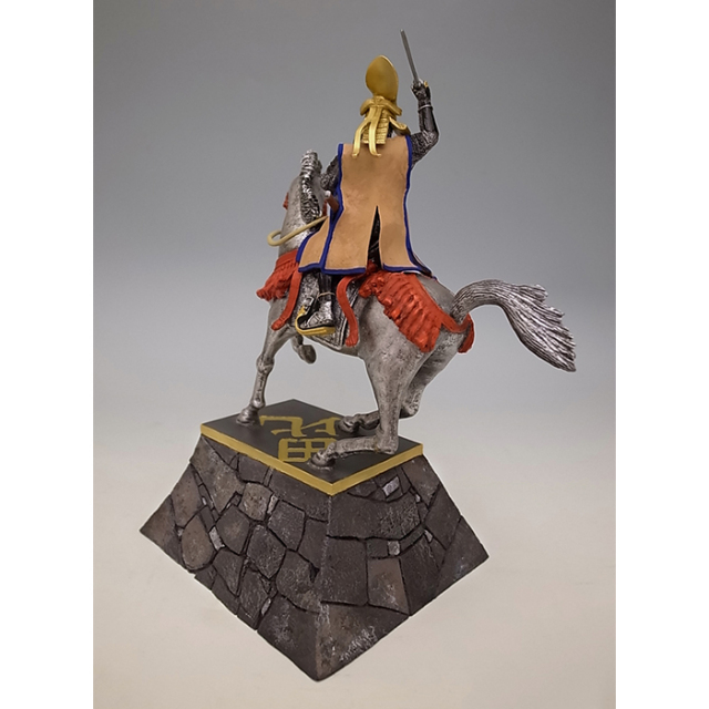 逸話が残されています。本像は一騎打ちの場面を連想させる、躍動的な騎馬姿を見事に捉えた武将像です。